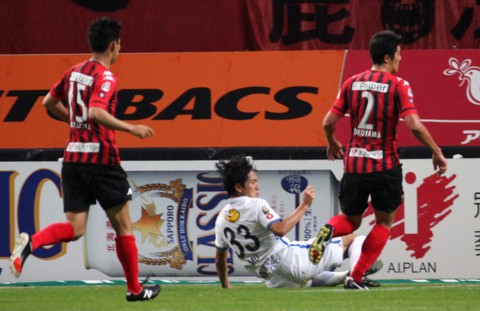このまま勝ち点1でもと、頭をよぎりかけた後半25分、鹿島に決定的な追加点を奪われる。鹿島山本がペナルティーエリア手前からスルーパスを送ると、反応した金崎は左の角度がない場所からつま先で触るスライディングシュート。ボールはクの横をすり抜けゴール、札幌は1点ビハインドとなる。
