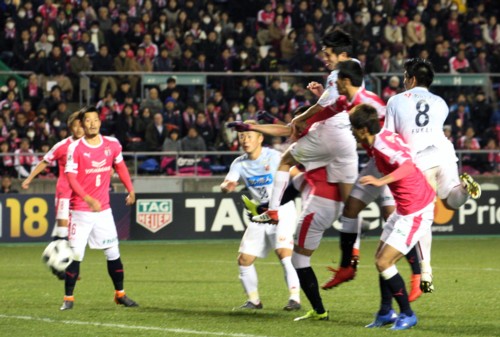 北海道コンサドーレ札幌は3月2日、アウエーのキンチョウスタジアムでセレッソ大阪と対戦。前半、C大阪に2点を奪われる苦しい展開も、後半、札幌が反撃開始。タイ代表MFチャナティップとMF深井の連続ゴールで同点。振出しとなったゲームはC大阪FW柿谷のゴールで突き放されるも、最後はセットプレーからDF進藤が決めて3−3の引き分け。札幌の3発はすべてヘディングで、決めた3選手そろってJ初ゴールという珍しいおまけ付きに、遠路駆け付けたサポーターもよろこんだ。