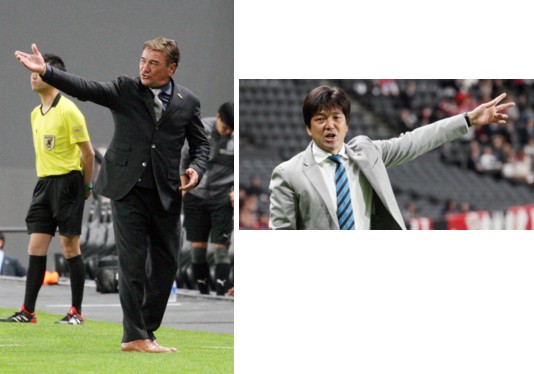 上:左側写真/後半3分、札幌MF菅のシュートがCKになった時、指示を出すペトロビッチ監督