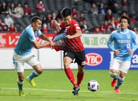 その後、磐田に攻め込まれる場面が目立つ展開となるもGK菅野の活躍もありゴールラインは割らせない。前半32分、磐田の松浦が左サイド深い位置でのインターセプトから、ペナルティーアーク辺りにいたMFムサエフへパス。ムサエフはトラップから右足で抑えの効いたミドルシュートを放つも菅野がセーブ。試合はスコアレスで折り返す。