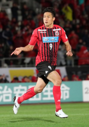 上写真/後半4分、同点ゴールを決め得意満面の札幌FW都倉(9番)