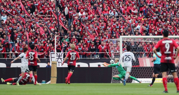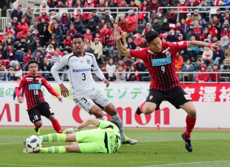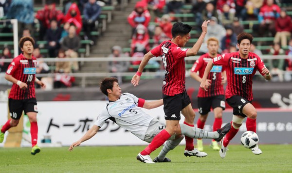 一進一退で進み、札幌のビッグチャンスは前半22分。センターサークルでこぼれ球を拾い、ショートパスでMFチャナティップへボールが渡る。チャナティップは敵陣中央から都倉へスルーパス。ペナルティーエリアに侵入した都倉は切り返しでDFをかわし中央へパス。フリーで待っていたMF宮澤が左足でシュートを放つも大阪GK林に阻まれ、先制点とはならず。