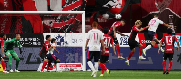 試合は両チームのアグレッシブな姿勢が見え始めた前半6分に早速動く。C大阪が右からCKを獲得し、DF丸橋が左足でゴールに向かっていくボールを蹴り込む。それにニアで合わせたのがマテイ・ヨニッチ。ゴールライン上から戻りながらの動きから、うまく体をひねって頭で合わせ先制。札幌は出鼻をくじかれる展開となる。