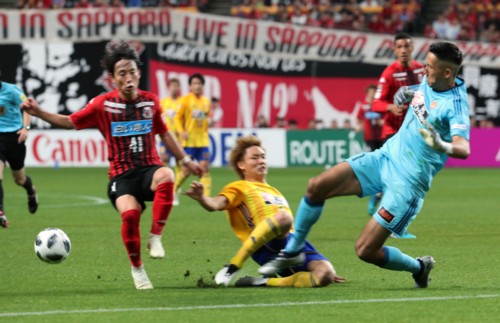 前半15分と16分の札幌の連続攻撃。FWジェイからパスを受けたMF菅が左サイド敵陣深くからクロスを供給。ペナルティーエリア内へ走り込んできたMFチャナティップがヘディングシュートを放つもCKに逃げられる。この獲得したCKをDF福森がファーサイドに蹴り込むと、ジェイが頭で触り、こぼれたボールを三好がボレーシュートも、わずかに枠の外。