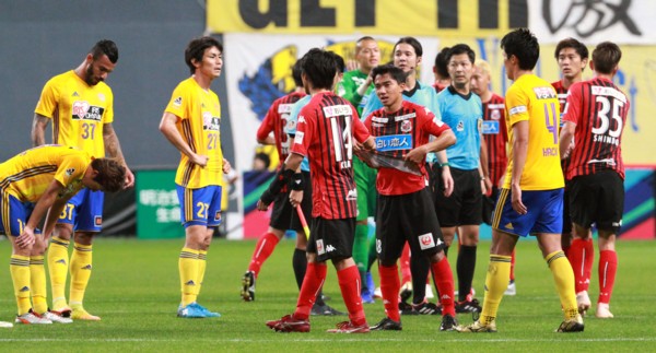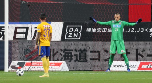 今度は後半27分、札幌がペナルティーエリア手前を細かいパスで崩しながら右サイドに振り、クロスを供給。これがDFに当たりペナルティーエリア内左にいた菅へボールが流れ、豪快な左足ボレーでゴール右サイドネットに突き刺した。札幌に待望のゴールか―と思われたが、GK前にいたジェイがオフサイドの判定でゴールとはならず。
