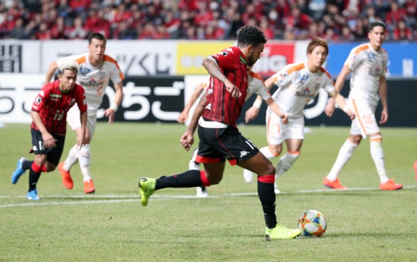 上写真/前半追加タイム2分、札幌FW鈴木が得たPKをMFアンデルソン・ロペスが志願して蹴り、再びリードする。このゴールが快進撃の幕開けとなる