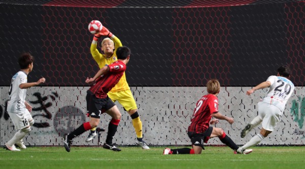 この後も札幌がチャンスを作りながらも仕留められない状態が続くと、試合のハイライトは後半43分。札幌は残り時間わずかで長崎にPKを与える絶体絶命のピンチ。キッカーの畑は緩急つけた助走でGKを揺さぶり、正面のグラウンダーシュートを選択。これをGK菅野は相手を見て横に飛ぶも、残った右足でボールをはじき出すスーパーセーブ。試合はそのまま0−0でタイムアップ、輝きを放ったベテランGK菅野が勝ち点1をもたらしたゲームだった。