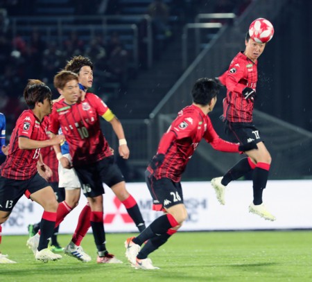 試合はホームの札幌がいきなりチャンスを作る。前半2分、ペナルティーエリア手前左でFKを獲得した札幌はDF福森が左足で蹴り込む。このキックをMF荒野がドンピシャのタイミングでヘディングシュートを放つもオフサイド。