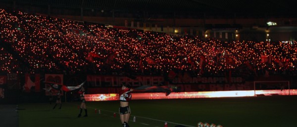 上写真/J1第22節、浦和戦に向け、選手入場のセレモニーで場内が暗くなり、ペンライトが踊った