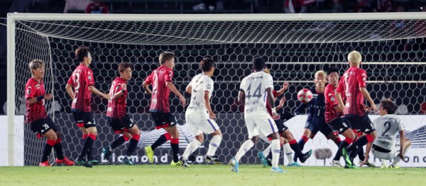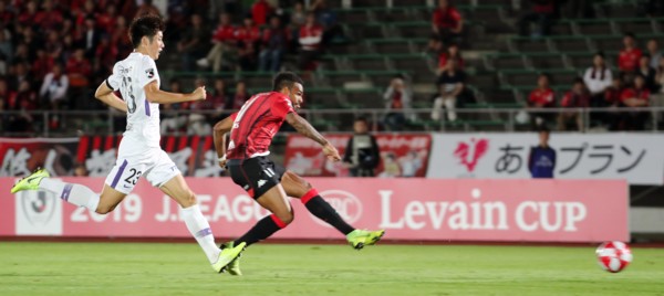札幌はジェイをトップに、アンデルソン・ロペス、ルーカス・フェルナンデスのブラジルコンビのシャドー。開始直後からルーカスの動きが解らない。少し下がり目は、相手中央のパス回しをケアした、いつもの動きと違う。ボランチの荒野拓馬も中を気にし過ぎか、パスがほとんど出せない。こんな中で前半9分、A・ロペスが前線で持ち込み、相手DF陣3人のブロックをかわしながら、ペナルティアーク付近から左足で蹴り込んだ。大きなアウエー得点でリード。