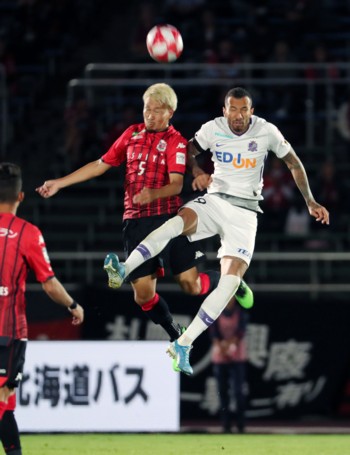 気を引き締めた札幌は19分、右サイドの白井康介がこぼれ球を背番号7のルーカス・フェルナンデスに渡し、中央に走り込んだFWアンデルソン・ロペスに長い空中パス。これをA・ロペスが左足で決めて同点。
