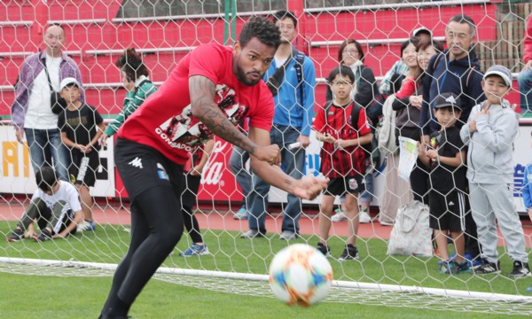 上写真/イベントの余興とはいえ、アンデルソン・ロペス選手は真剣そのもの