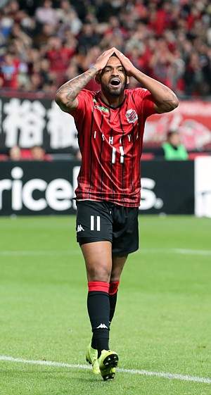 上写真/後半6分、幻のゴールに手を頭にやり、残念がる札幌MFアンデルソン・ロペス(11番)。これで流れが決まったか、結局試合は1−2で磐田に敗戦となった・・・