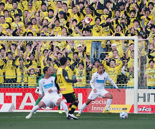 ところが、トスで勝った柏は風上を選択し、攻撃の方向が通常と逆になったのだ。とりあえず脚立なしで取材位置についたものの、競技場の構造上、取材位置後方のスタンドが低く、我々カメラマンが立ったまま取材するのは無理で、しばらくは中腰で撮っていたが、年寄りのひざにはとても無理と判断。取材を中断して反対側まで脚立を取りに行った。その間、柏に先制されるなど、散々だった。さてさて本題に入ろう。