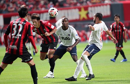 一方の長谷川健太監督率いるFC東京は、4−3−3で、DFの中央に初登場のジョアン・オマリ(レバノン=1年目)。MFアルトゥール・シルバ(ブラジル=2年目)。FW3人でディエゴ・オリヴェイラ(ブラジル=3年目)とレアンドロ(ブラジル=1年目)、アダイウトン(ブラジル=1年目)。ズラリ5人の外国籍選手。