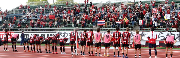 上写真/G大阪に0−1と敗れゴール裏サポーターにあいさつする札幌の選手たち。連勝とはならなかった