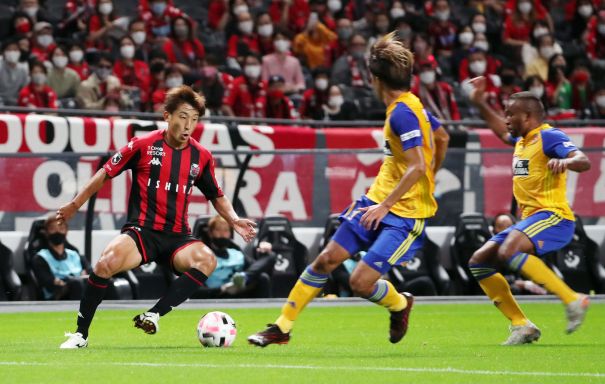 上写真/ホーム仙台戦、前節アウエーの神戸戦と同様、大卒ルーキー3人に加え、特別指定選手2人の5人が先発しお披露目となった。左からMF荒野(27番)、駒井(14番)、菅(4番)、大卒ルーキーMF金子(30番)とDF田中、FWアンデルソン・ロペス、特別指定選手MF小柏(35番)、DFキム・ミンテ(20番)、大卒ルーキーMF高嶺(31番)、特別指定選手GK中野(34番)、DF福森