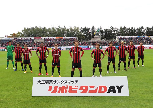 上写真/湘南戦試合開始前のスタメン集合写真(10月10日、札幌厚別公園競技場、北海道コンサドーレ札幌提供)