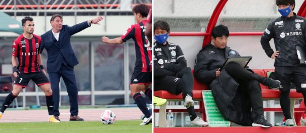 上:左側写真/後半38分、選手を鼓舞する札幌のペトロビッチ監督