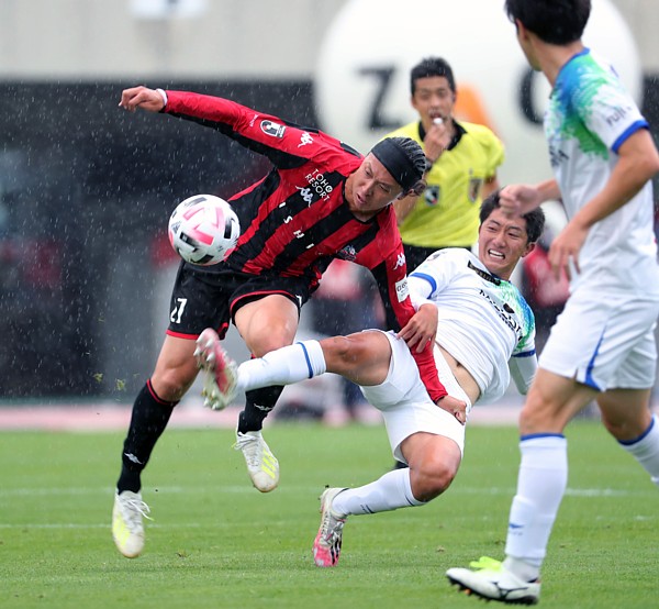 しかし先制は湘南。36分、湘南のMF金子大毅にGK中野小が成すべもなくミドルシュートを決められ0−1。その後42分には、右ペナルティーエリア外からの札幌DF田中の右足シュートをMF金子がゴール前で軌道を変え、左に決めて同点。1−1で後半へ。