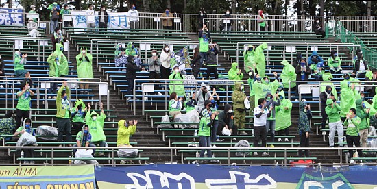 新型コロナウイルスの影響で、Jリーグは「多彩な制限」をしてきた。今回から「相手チームの応援団の入場」が解禁、湘南のグリーンのサポーターが60人ほど入場していた。