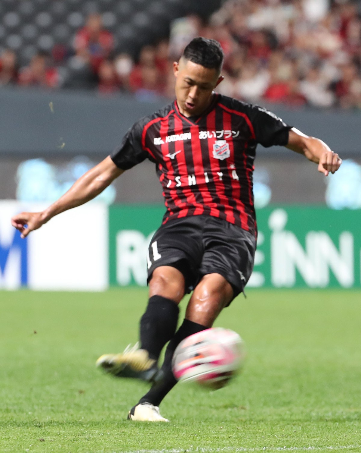前半39分、札幌MF青木がFKで先制ゴールを決める、札幌にとって6試合振りの得点となった。写真は7月13日、札幌ドーム、撮影・石井一弘